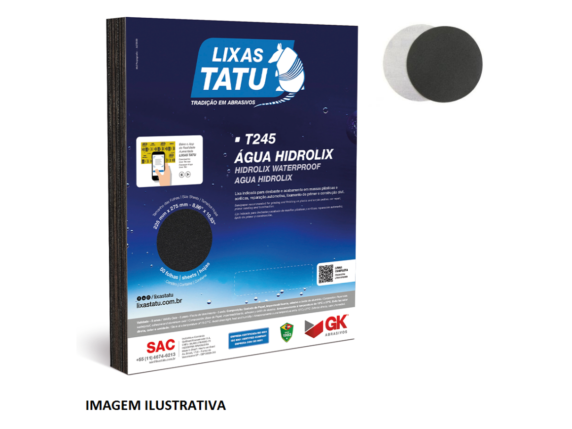 Lixa indicada para desbaste e acabamento em massas plásticas e acrílicas, reparação automotiva, lixamento de primer e construção civil.