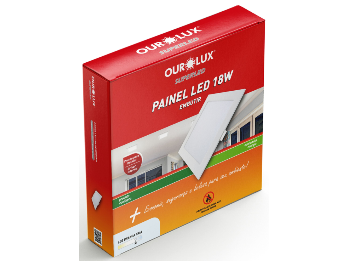 PAINEL EMBUTIR OUROLUX QUADRADA 18W